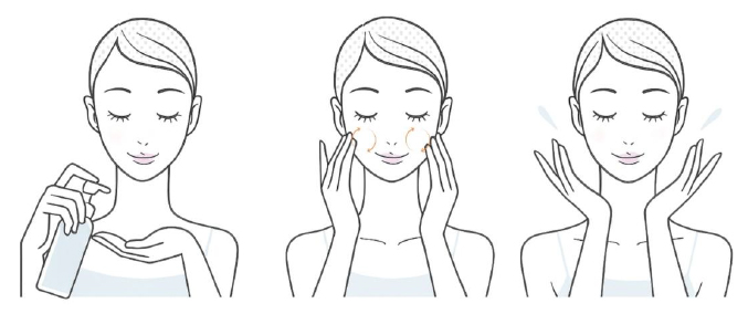 ②乾いた手、または濡れた手に適量をとり、顔全体にやさしく塗り広げます。手に数滴水を垂らしてクルクルとメイク汚れをなじませる。